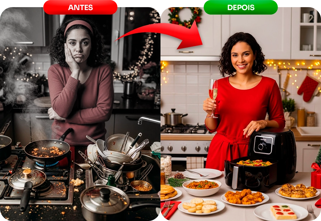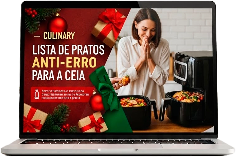 Pagar só R$6,93/mês no Natal com AirFryer e fazer tudo rápido, prático e sem sujeira — usando só a sua airfryer, sem panela, sem forno, sem louça e sem perder tempo. Você chega na ceia leve, tranquila e com um prato lindo.